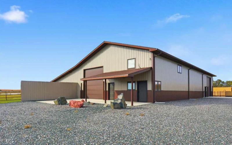 Beautiful acreage conveniently located just outside of town on a paved road! This spacious tri-level home features 4 bedrooms and 3.5baths, a main-floor laundry, and a generous kitchen with stainless steel appliances. Just off the kitchen, a versatile room provides endless possibilities—it’s ideal for an office, additional bedroom, formal dining space, or hobby room to fit your lifestyle. The primary suite offers a tiled shower and walk-in closet, while the south-facing windows showcase amazing views of the open pasture and expansive valley. The property also includes a well-equipped 40’ x 90’ shop with two 14’ overhead doors, a concrete floor with built-in drain system, full insulation, and a 1,000 sq. ft. apartment featuring a half bath on the main level and one bedroom and one bath upstairs, plus a covered patio area. On the west side of the shop sits a 32’ x 90’ loafing shed, ideal for livestock or additional storage. Both the main home and shop have a new leach field, and the home received a new roof in 2023.