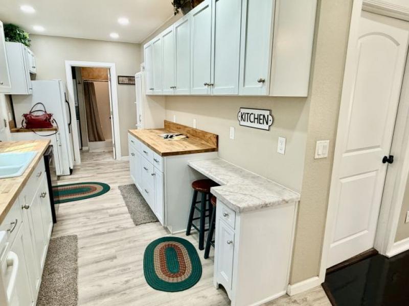 Darling Bungalow, just steps away from downtown and hospital. Totally remodeled and so ready for you. Everything almost brand new kitchen-- flooring, plumbing, electric, kitchen cabinets, chopping block countertop and appliances. wood floor in living room with Newer floor coverings everywhere else, many windows, Oh the bathroom is almost new too and so cute, complete with a walk in easy access large shower and a stacked washer/dryer, open pantry area. The entire living space is so bright and sunny, fabulous windows and fresh paint throughout. |